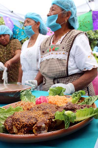 Querétaro ha logrado ubicarse como el tercer estado en donde la gastronomía es considerada Patrimonio Inmaterial de la Humanidad y Tequisquiapan, es el primer municipio que nos da razón de ello, ya que en el marco de la Feria del Pueblo de este año, se llevó a cabo el “Primer Encuentro Gastronómico Inter comunidades” en donde las 18 comunidades, barrios y colonias que integran este Pueblo Mágico, mostraron su mejor mole y platillo más representativo para lograr darle identidad gastronómica a Tequisquiapan, que esperan sea reconocida tanto por nacionales como por extranjeros. Es así como la Plaza Hidalgo, plaza principal de este pueblito, se llenó de música, danza, colores y sabores en donde los stands exhibían grandes cazuelas de mole, artesanías, quesos y chiles. Sin embargo, para determinar qué mole es el que mejor representaría a Tequisquiapan, se realizó un concurso en el que seis reconocidos chefs, entre ellos Pablo Salas, Alejandro Kuri y María Elena Vázquez Lugo, calificaron la preparación, sabor y el motivo por el cual el mole se acompaña de verdolagas, nopales, garbanzos, quelites, arroz o fideo seco, considerados platillos típicos. Una vez terminada esta ardua labor, el primer lugar lo obtuvo la señora María Luisa Ordaz con un mole hecho a base de chile ancho, tomate, almendra, bolillo, cebolla, ajo y hoja de aguacate, el cual aparecerá en la carta de los restaurantes de Tequisquiapan como platillo típico, de igual forma se le dará apoyo para el lanzamiento de la marca y $10,000. Mientras que la señora Rosario Santos Morales, ganó el segundo lugar con el mole de xoconostle, demostrándonos la variedad que podemos hallar en un solo platillo, y que con ingredientes tan comunes en la mesa mexicana como el cilantro, comino, chile guajillo, masa de maíz, cebolla, jitomate, ajo y el rosado xoconostle, se puede elaborar esta tradicional salsa.