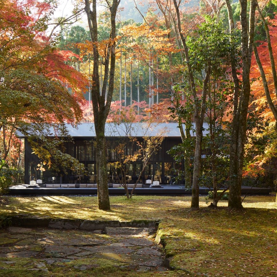 La gastronomía celebra la estacionalidad. En el restaurante principal, los ingredientes del bosque —bambú, setas, hierbas silvestres, pescado de río— se transforman en kaiseki de precisión poética. Cada plato parece contener un fragmento del entorno, un homenaje a la montaña y al agua. Durante el desayuno, el miso humeante y el arroz cocido al momento se sirven con vistas al jardín de musgo y piedra, donde la niebla matinal se disuelve lentamente.