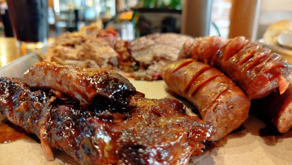 También vale la pena probar el pulled pork, cocinado lento y con un equilibrio entre jugosidad y ahumado que lo vuelve irresistible, además de sus famosas salchichas: la kielbasa tradicional y la de jalapeño con cheddar. Todo esto se acompaña con una buena variedad de cervezas que completan la experiencia, porque un buen BBQ siempre sabe mejor con un tarro frío al lado.