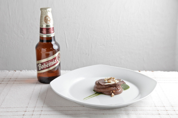 Para deleite de las personas congregadas en el hermoso restaurante Origen, su propietario, el chef Rodolfo Castellanos, envió un exquisito Ombligo de Chocolate, mousse de chocolate con salsa de albahaca, coco y especias acompañado con una salsa de chocolate y el refrescante sabor de la Bohemia Obscura®.