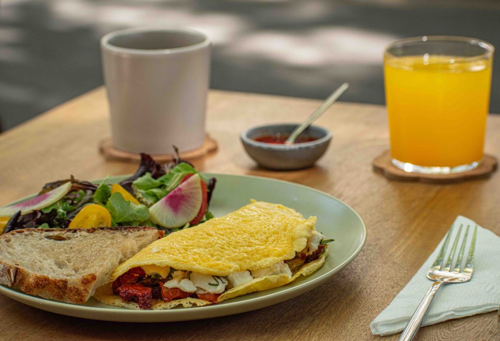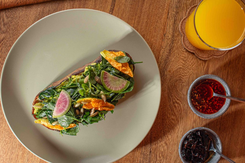 Por las mañanas, el menú de desayuno en la Condesa arranca con clásicos reconfortantes como fruta fresca, omelettes, huevos rancheros y tortilla española. Son opciones ideales para empezar el día con algo familiar, pero bien ejecutado y lleno de sabor. A esa base se suman los imperdibles de la casa: la tosta verde con pan hecho en casa y mucho aguacate, el sándwich de vegetales rostizados y la baguette de jamón serrano, pensados para quienes prefieren desayunos sustanciosos.