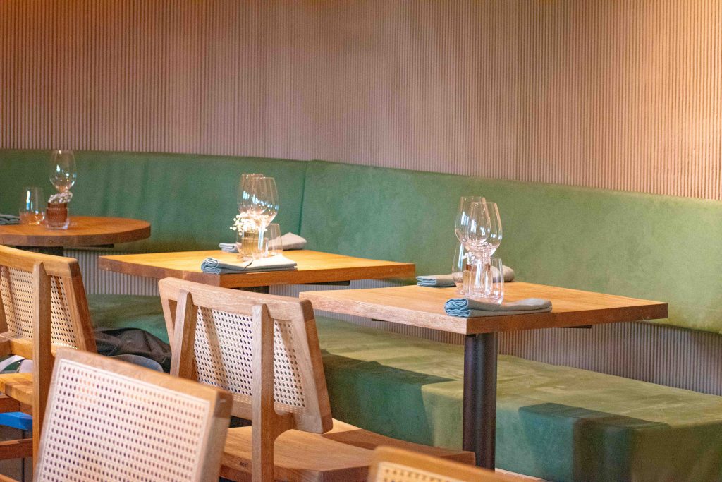 Más allá de la cocina, Casa Elena apuesta por un ambiente cuidado en cada detalle. El interiorismo corre a cargo del estudio E DE ESPACIO, que concibió el restaurante como un lugar acogedor y hogareño, donde el diseño acompaña al plato sin robarle protagonismo.