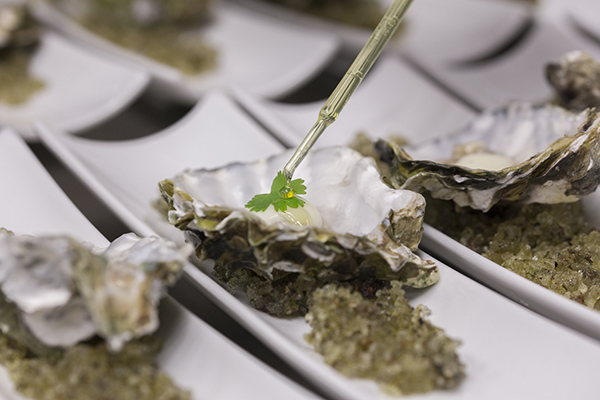 Ostra Pasteurizada con vinagreta de limón Eureka y aceite de oliva extravirgen.