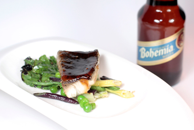 Le siguió un Bacalao en salsa de anguilas, espuma de chayote y verduras al dente que Bohemia Weizen® adornó con sus notas florales para sorprender paladares.