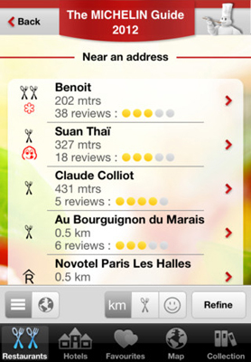 Los usuarios de iPhone podrán acceder a estas cinco nuevas aplicaciones incluso sin conexión a internet, excepto para utilizar los servicios de geolocalización (GPS) y consultar las opiniones de otros consumidores. Estas aplicaciones estarán disponibles en cinco idiomas (español, inglés, francés, italiano y alemán) que incluyen la totalidad de los restaurantes y hoteles de la selección de la guía MICHELIN 2012 por país.