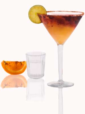 Batir todo en la licuadora con hielo y servir en vaso Martini, previamente escarchado con sal de gusano y puré de frambuesas.