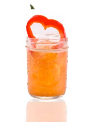 Macerar todos los ingredientes en un shaker yagitar,. Adornar con una rodaja de pimiento rojo.