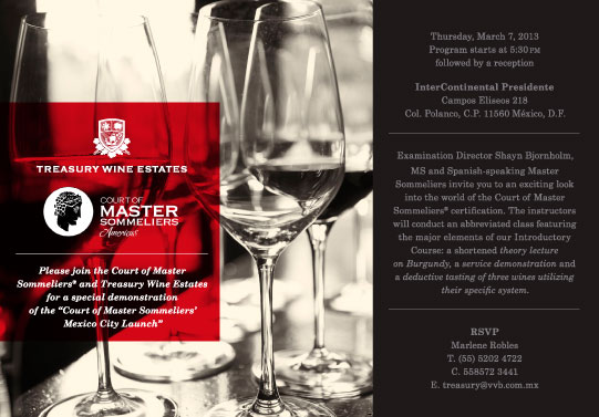 - Este programa se impartirá por un equipo de Masters Sommeliers profesionales con gran conocimiento en Vinos y licores y tendrá una duración de tres días, durante el mes de Marzo de 2013 ( 5-7 de Marzo).