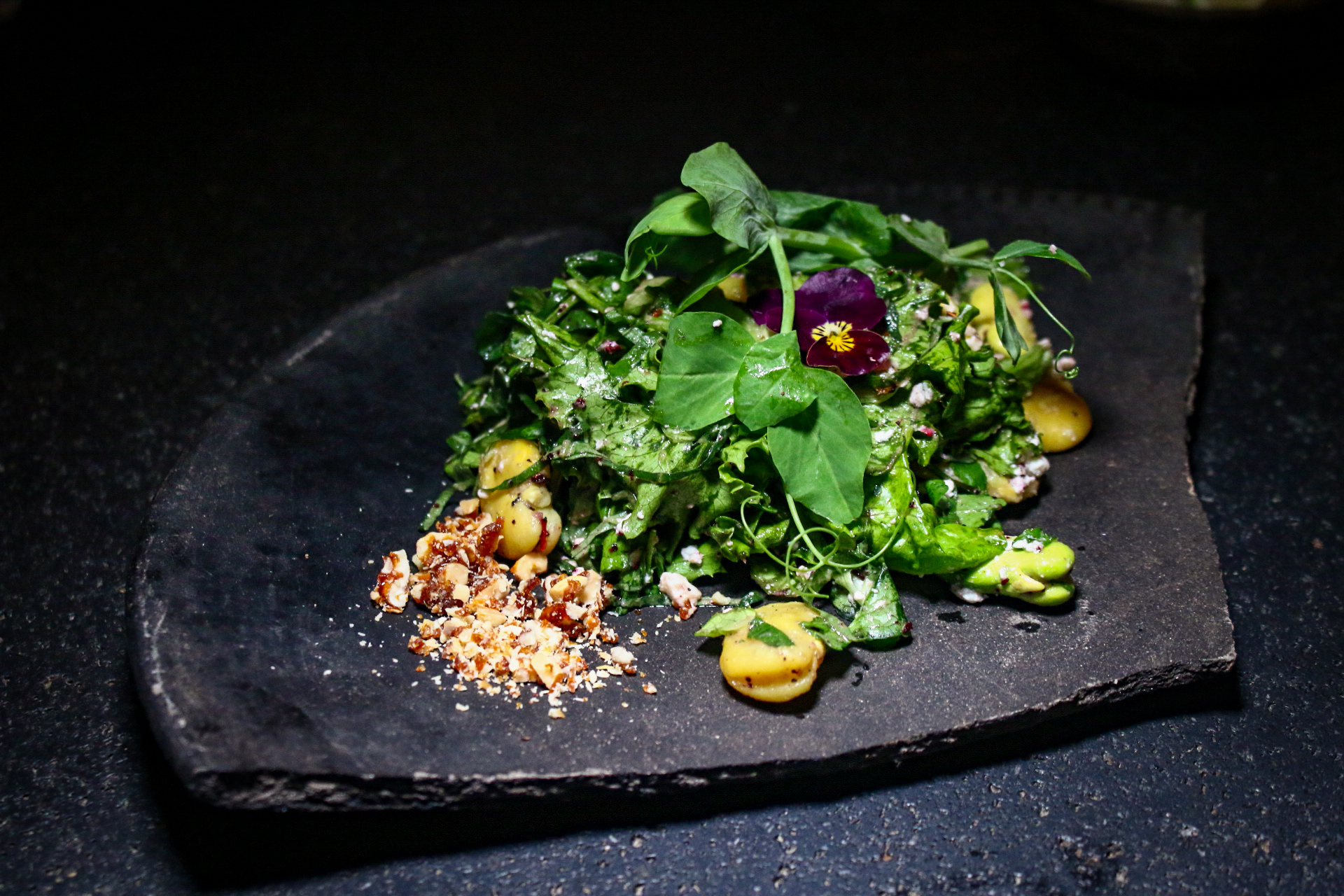 En el segundo tiempo se hizo visible uno de los pulmones de la Ciudad de México, Xochimilco. Pues lo que nos presentaron fue una ensalada de hojas chinamperas y habas, tanto verdes como maduras.