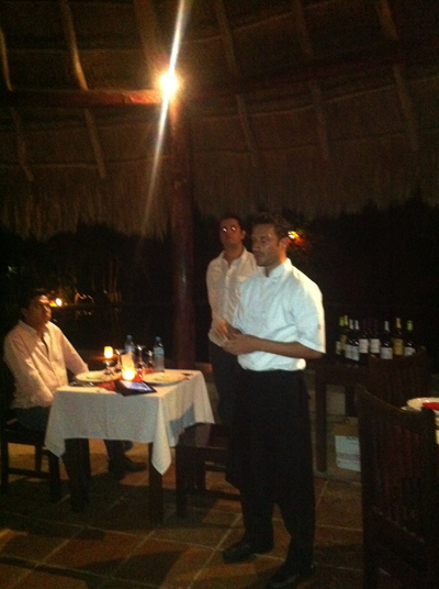 El hotel Don Diego de la Selva en Tulum se mantiene en su línea de ofrecer actividades dirigidas tanto a sus huéspedes como a los visitantes y locales, en esta ocasión, con su segunda Cena Maridaje que se llevo a cabo este pasado viernes con la participación de Tinto y Ole empresa especializada en la distribución de Vinos Españoles, ya que gracias a su buen trabajo en México no solo son Importadores directos de cada una de las bodegas sino que los han nombrado embajadores de las mismas, Alvear, Hermanos Escudero y Dios Ares, diferentes vinos acompañaron una cena de 5 tiempos, donde el Chef Leonardo presento cada uno de los platillos junto con Fernando Dibildox embajador de las bodegas.