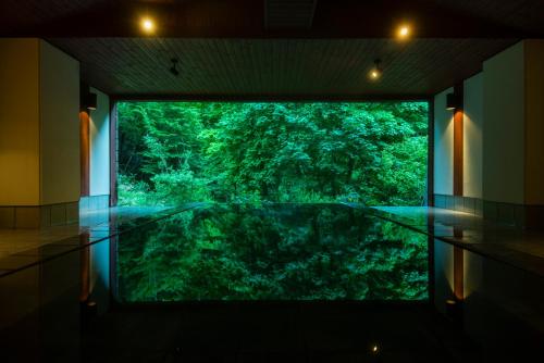 El onsen es alimentado por una fuente termal que emana desde el interior de la montaña. En los baños exteriores, el agua cae sobre piedra y madera mientras se escucha la corriente del bosque. Las temperaturas están ajustadas para una inmersión prolongada, permitiendo relajación muscular y descanso profundo. Los baños interiores, revestidos en madera aromática, mantienen una atmósfera cálida y tenue.