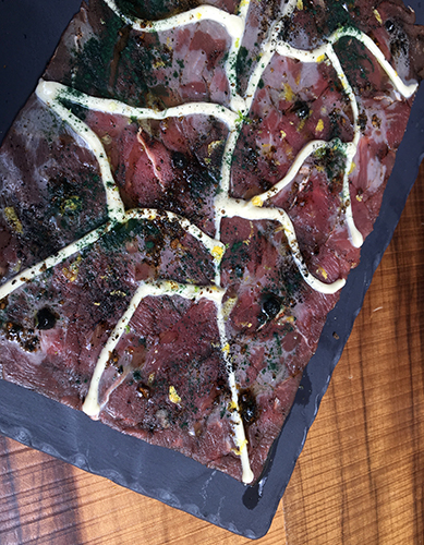 - Tiradito de res trufado con tártara de cenizas de habanero