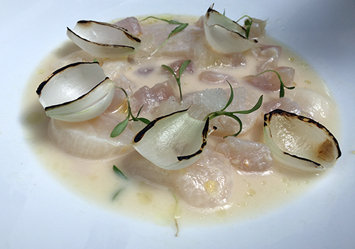 - Ceviche de callo de hacha y huachinango al jengibre