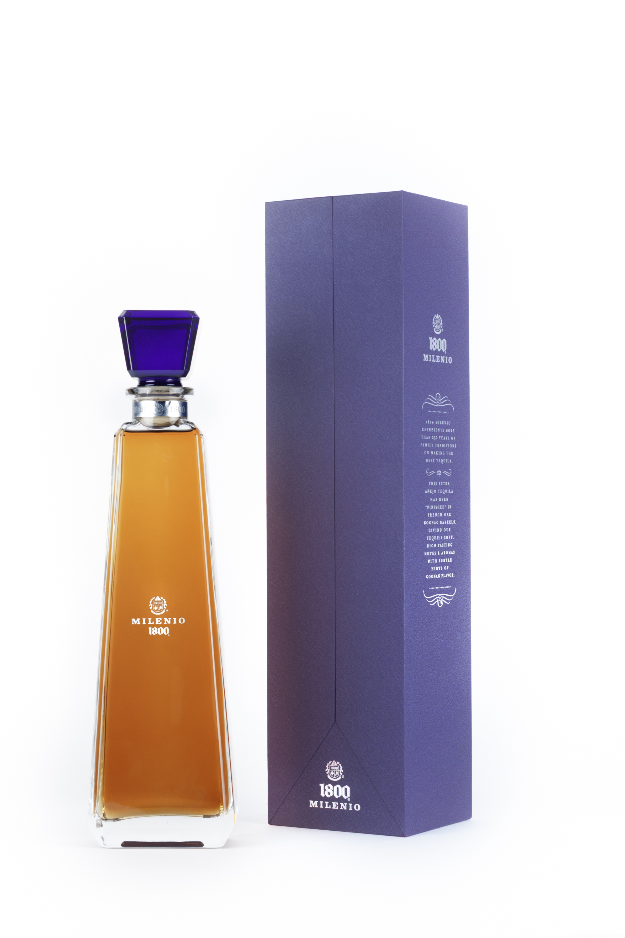 1800 Milenio, es un tequila extra añejo, 100% de agave azul que cuenta con matices cobrizos y dorados brillantes. Seleccionado en su plena madurez, su proceso de elaboración enaltece la tradicional producción mexicana del tequila ya que respeta el proceso original hasta la maduración en barricas de roble americano. Después de un prolongado añejamiento los más finos tequilas son seleccionados cuidadosamente por el Maestro Tequilero para que finalicen su proceso con 4 meses más en barricas de roble francés.