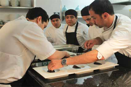 Ahondando más en los fundamentos de Kaah Siis, Israel Montero comentó que conoció a Alfredo Chávez siendo estudiantes en Francia, compartiendo salidas a comprar ingredientes directamente con el productor y entendiendo el amor que éstos le tienen a su producto. Esto, cuenta Israel, “nos llevó a darnos cuenta de lo que tenemos a menos de 150 km de la ciudad de México: una variedad de productores locales que hacen muchas cosas en cultivos de verduras. Lo que de alguna manera influyó en lo que queríamos hacer: tener un restaurante inspirado por la comida mexicana, pero sobre todo que fuera guiado por las cosas que conseguimos de los productores, mostrar lo que se puede hacer con los productos del campo mexicano. Por eso nuestra propuesta es comida mexicana de producto y no de tradición”.