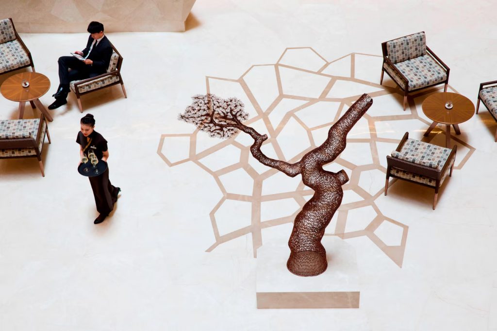 Entrar al lobby fue como sumergirse en una sinfonía de mármol y luz. Los silencios estaban cuidadosamente dispuestos, como notas que realzan la armonía general del espacio. Aromas sutiles, quizás jazmín con un suspiro de té verde, flotaban en el aire, envolviéndome en una atmósfera de paz sofisticada. Todo estaba dispuesto para los sentidos, para una presencia plena, sin prisas ni agendas. El arte de la hospitalidad, en su forma más elevada.