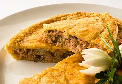 - Vacía el preparado de atún en el molde, extiéndelo y cúbrelo con el resto de la masa.