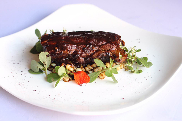 Costillar de Cerdo con Elote Criollo y Mole Negro
