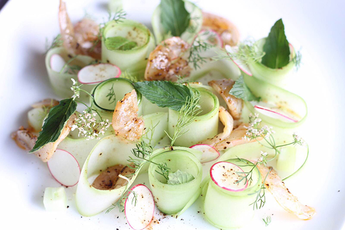 Ensalada de Pepino con Camarones, Eneldo y Chilhuacle