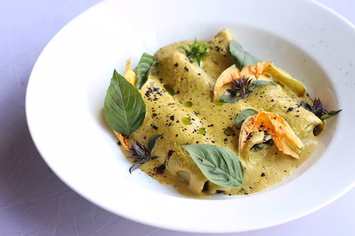 Ensalada de Requesón, Hoja Santa y Chapulines