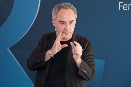 El 13 de marzo, Ferran Adrià congregó en el Auditorio Nacional a más de seis mil personas, la mayoría estudiantes de gastronomía, para brindar una conferencia magistral, que también formó parte de las actividades de la gira “Juntos para transformar”. Durante la plática, resaltó sus experiencias y visiones en la cocina y los negocios; destacó su nueva etapa con elBulli Foundation, que busca convertirse en un centro de creatividad: “Existen ya grandes escuelas de cocina y de restauración, por lo que nuestra aportación no debería entenderse desde la perspectiva de la docencia. Queremos ayudar a pensar, puesto que la actitud y la mentalidad adecuada son las que permiten crear de manera positiva y provechosa”.