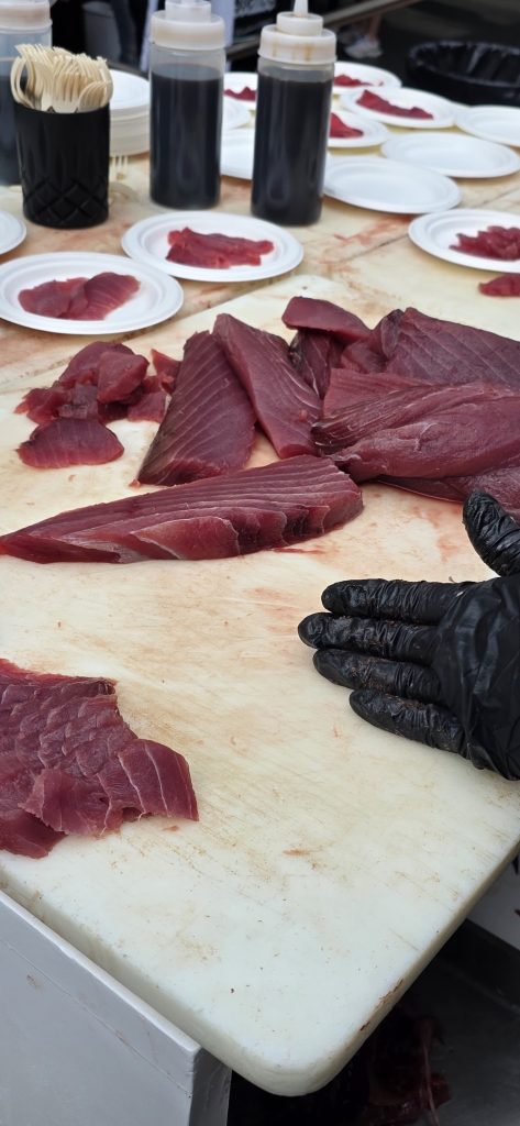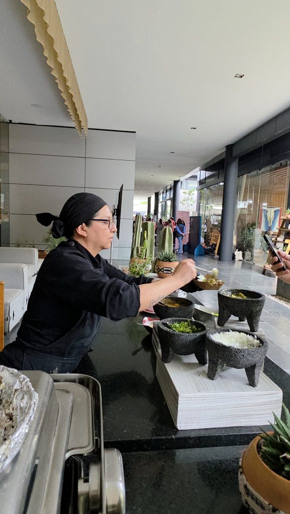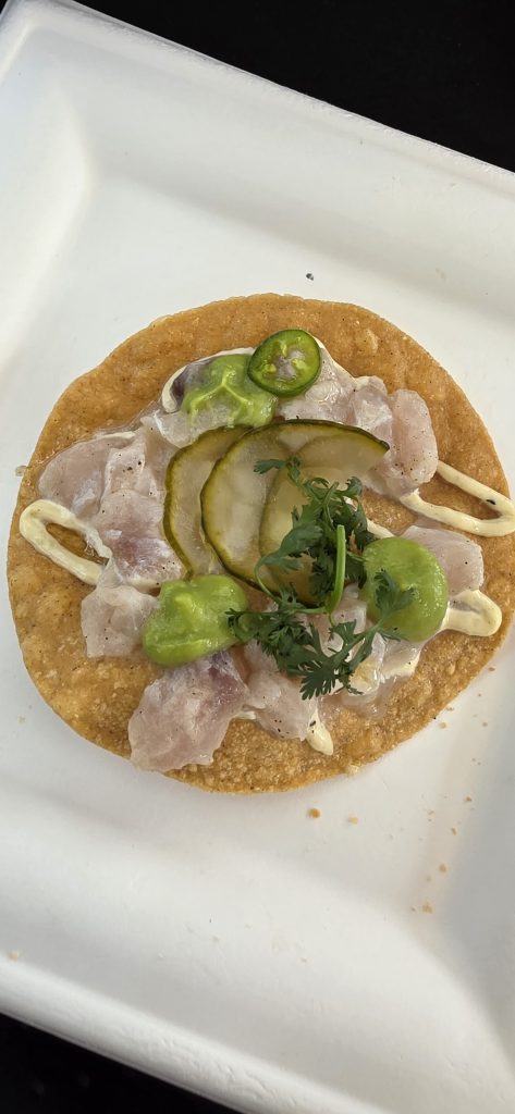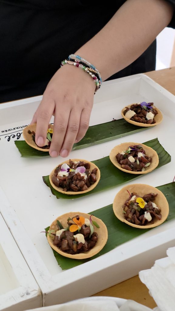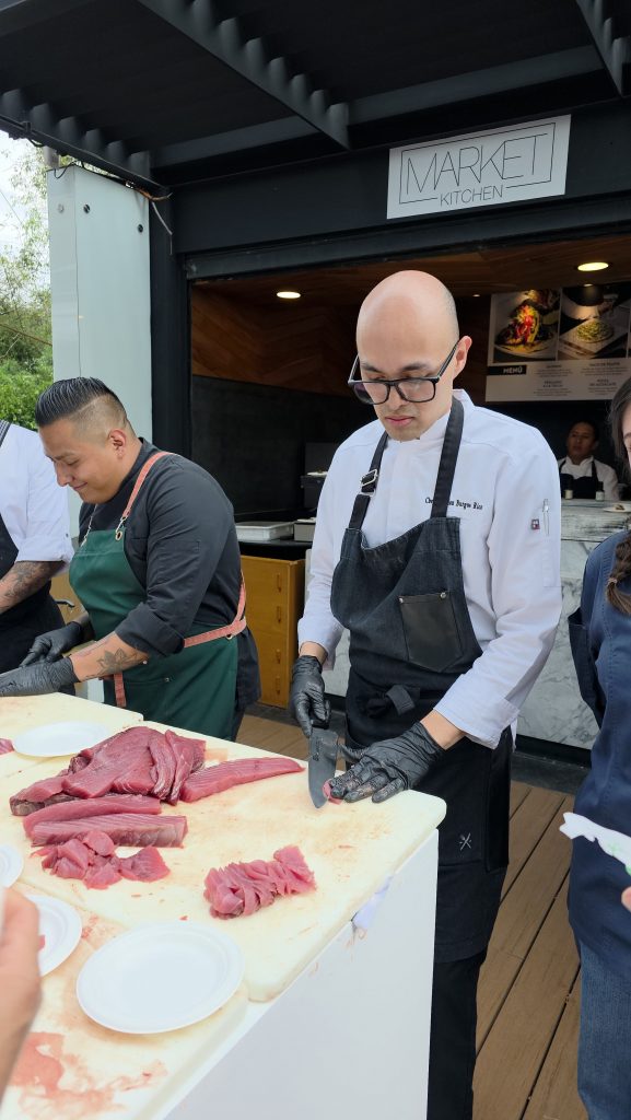 El festival permitió disfrutar una gama culinaria que fue desde la alta cocina hasta preparaciones populares reinterpretadas. Se sirvieron hamburguesas de Central Central Mx, pizzas artesanales de Fino by Grande, tacos al pastor y de pulpo, además de chiles en nogada y galletas artesanales. Uno de los momentos más celebrados fue el ronqueo de un atún de 45 kilos, presentado por chefs que mostraron el despiece y cocinaron cortes frescos frente a los asistentes.