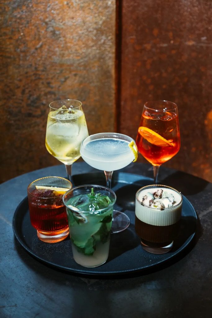En Fuego, el cierre de la comida sigue la misma lógica de la casa: llevar el humo hasta el último momento. Entre los postres, uno de los que más llama la atención es la dona de Krispy Kreme llevada a la parrilla, servida con crumble de chocolate. También destaca el strudel de ate de guayaba con helado de frutos rojos, una combinación dulce y fresca que funciona muy bien al final.
