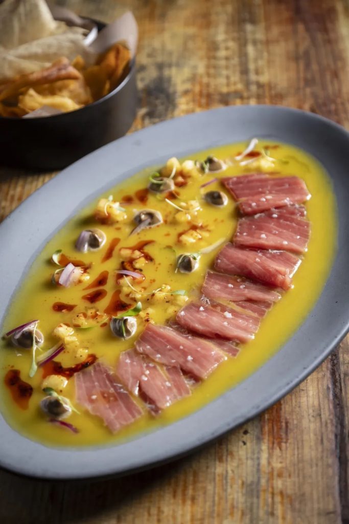 La selección combina referencias mexicanas y españolas, algo que se refleja en varios platos del festival. Entre ellos aparecen propuestas como tarta vasca y trufa con callo de hacha, vieras con jamón ibérico y tomate a la gallega, lasaña de gambas con hongos silvestres y un crudo de atún con salsa macha, alioli de ajo negro y leche de tigre de piña. Ese cruce de sabores permite que el menú tenga más amplitud. Hay opciones para quienes prefieren recetas intensas, pero también para quienes buscan platos más frescos y ligeros.