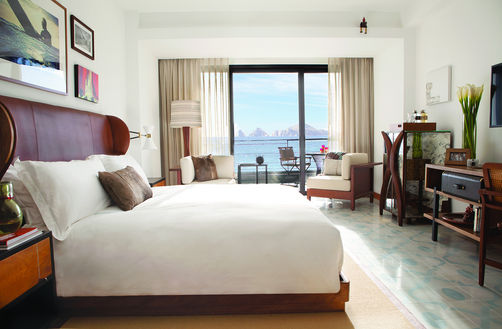 Una arquitectura que rememora al México de los años 60 se mezcla con piezas de arte contemporáneo del artista plástico José Noé Suro; mientras que por las ventanas, el paisaje natural del Mar de Cortés y el Arco de Los Cabos se aprecian desde las 161 habitaciones que conforman The Cape, el primer hotel de la cadena Thompson que llegó a tierras mexicanas.