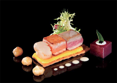 Combinación de mariscos con crujiente de phyllo