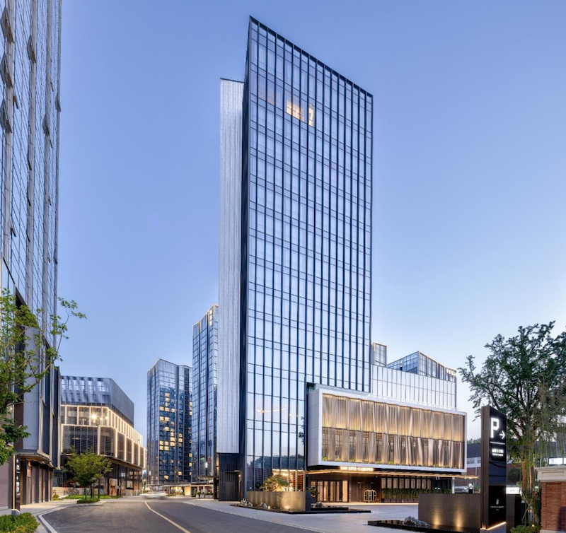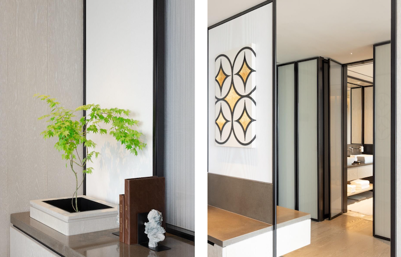 Diseñado por el aclamado estudio KPF Architects, la llamativa fachada del hotel utiliza técnicas modernas para reinterpretar elementos tradicionales de Suzhou, como los tejados de tejas azules superpuestas, los biombos plegables y el concepto de espacios negativos en las pinturas chinas. Los interiores, conceptualizados por el renombrado arquitecto Peter Remedios, rinden homenaje al histórico comercio de la seda de Suzhou y a los emblemáticos jardines clásicos. Los tonos neutros crean un fondo sereno que acentúa el contraste entre las paredes blancas y las baldosas negras, mientras que las intrincadas ventanas enrejadas y los motivos inspirados en la seda tejen una narrativa refinada en todo el conjunto. El resultado es una elegancia discreta que refleja armoniosamente el rico patrimonio de la ciudad.