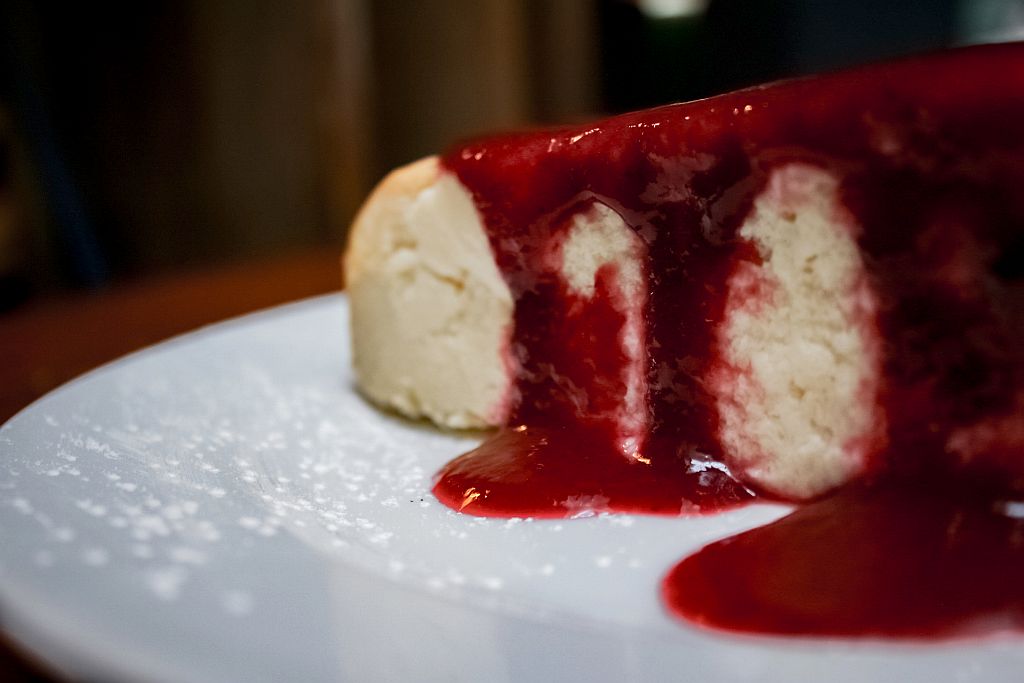 Abrimos la ronda con un New York cheesecake, un pequeño monstruo de queso ricotta con salsa de frutos rojos. Un plato que aunque no lo parezca, no peca de dulce, por lo que lo recomiendo para personas que como yo, se empalagan fácil.