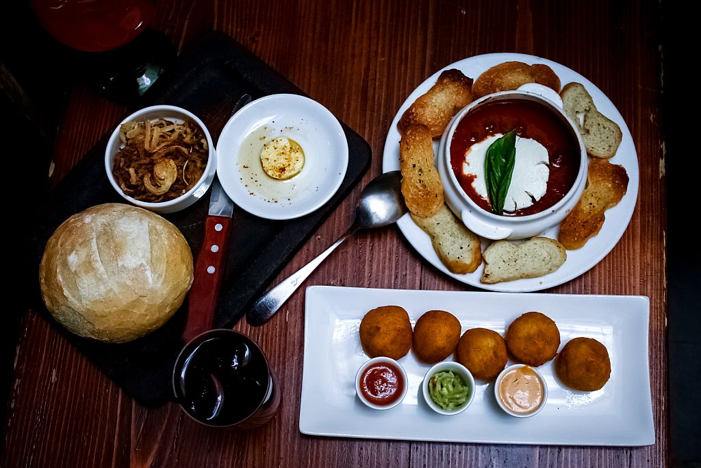 Un plato que da un leve guiño a las croquetas de serrano, tan populares en la cocina española. Con su delgada superficie crujiente y una bomba cremosa en el interior, resaltada con matices únicos, dependiendo de la salsa con la que las acompañes.