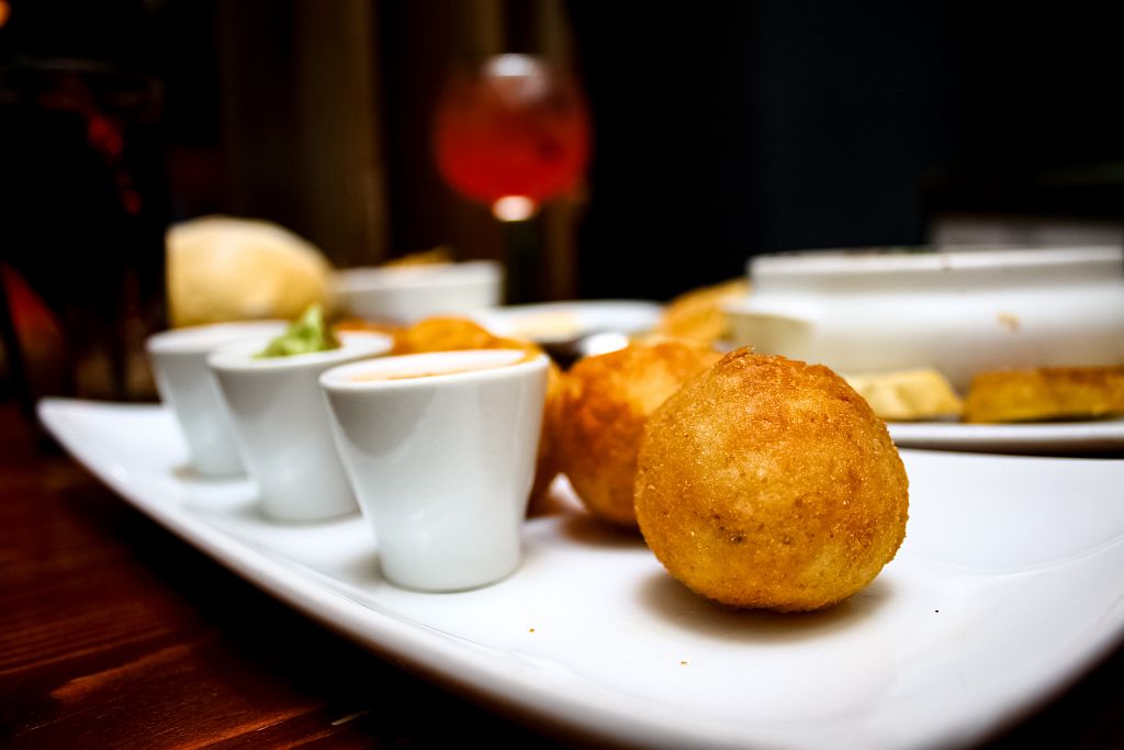 Ya en el terreno de las entradas seleccionamos dos, los Arancini de camarón, pequeñas esferas de risotto y camarón, fritas y acompañadas por una trilogía de salsas. En lo personal, mi favorita fue la de chipotle.