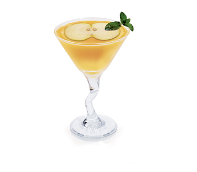 Cuele y vierta en una copa fría para martini, adorne con la rebanada de manzana y sirva.