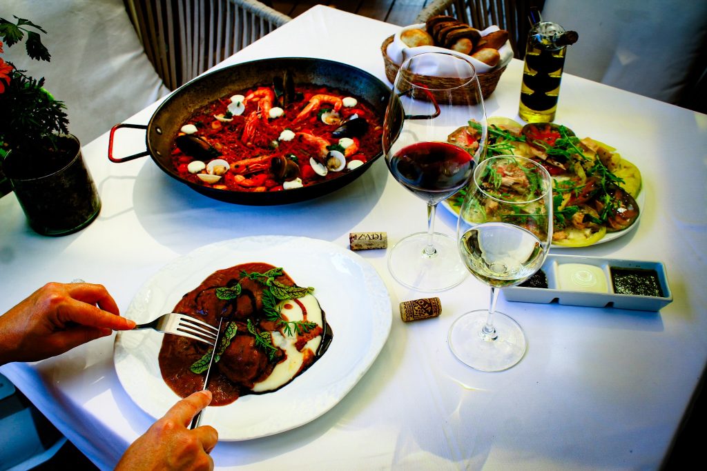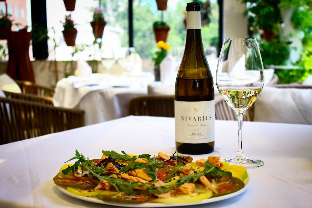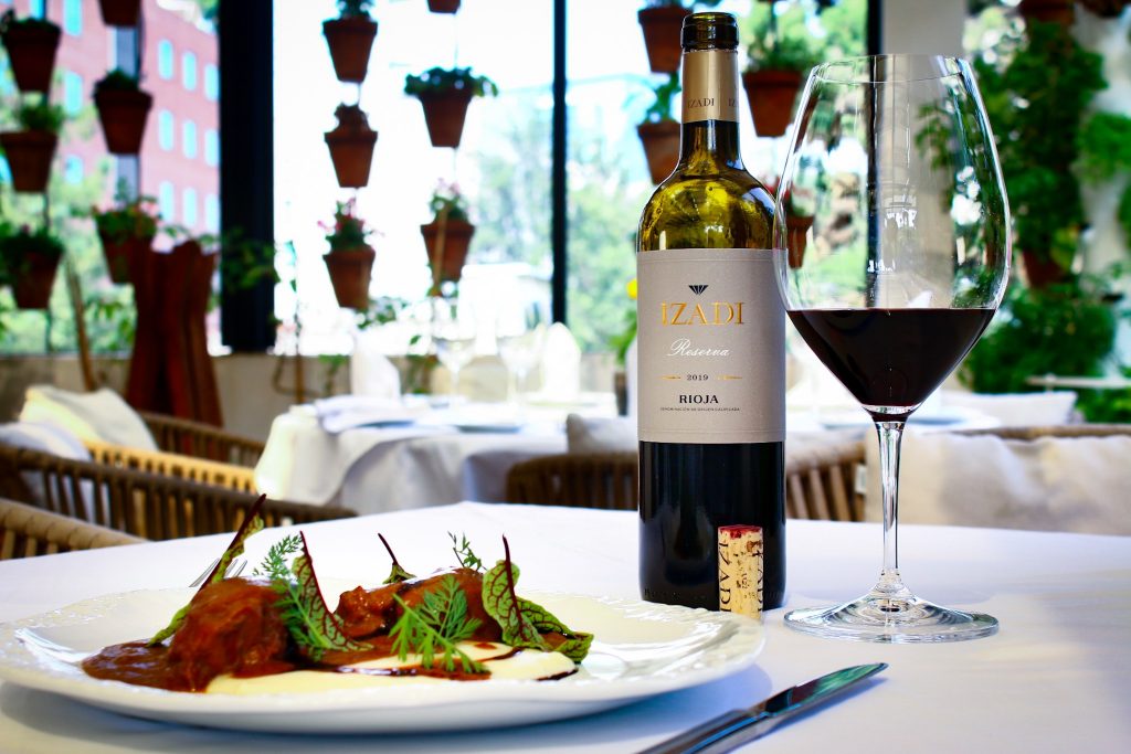 La comida comenzó con una ensalada de tomates orgánicos, frescos y dulces, y un fideuá de mariscos, maridados con Nivarius de tempranillo blanco. Este vino, con sus notas de cítricos y flores blancas, aportó frescura y realzó los sabores salinos de los mariscos. Para el plato fuerte, una carrillera cocida a fuego lento, el Izadi Reserva fue la elección ideal. Sus taninos redondeados, notas de frutos secos y especias complementaron la intensidad del guiso, creando un maridaje cálido y memorable.