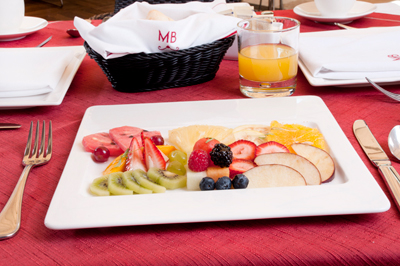 Jugos, fruta y pan