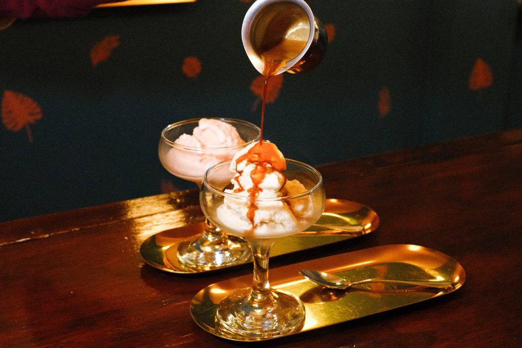 El café es siempre el protagonista, con granos de origen nacional —principalmente de Oaxaca— que varían según la temporada. Entre sus creaciones destacan el Affogato Garibaldi y las bebidas esquimadas, una propuesta distinta en la que la bebida se enfría con aire e hielo para lograr una textura ligera y espumosa.