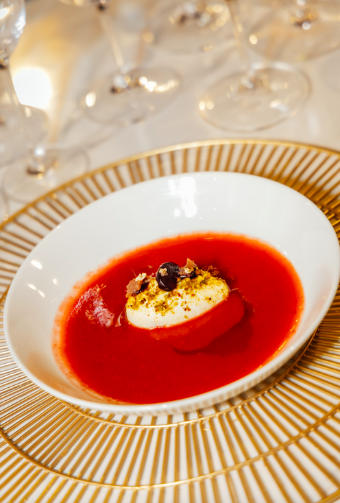 En su menú destacó un plato que dejó huella: el short rib glaseado de la chef mexicana Karime López, la primera mexicana con una estrella Michelin por su trabajo en Gucci Osteria en Florencia. Técnica, sabor y emoción en un solo bocado.
