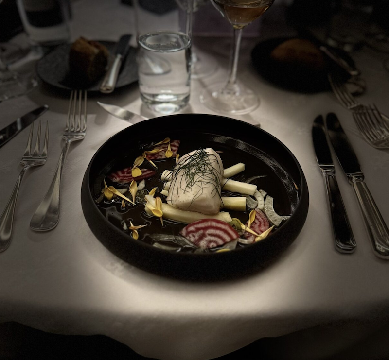 La experiencia comenzó en el Club de Industriales, un espacio que conserva el prestigio de lo privado y lo distinguido. En dos noches memorables, la mesa se convirtió en un puente entre dos geografías. Ostiones con cangrejo y mezcla, salmón curado con aquavit y zanahoria, wagyu asado con mole negro y colinabo, además de un imponente rack de cordero acompañado de chutney de ruibarbo y yogurt de cabra al limón, mostraron la capacidad del chef para entrelazar sabores intensos con matices delicados. Cada platillo representó una conversación entre montañas y volcanes, entre praderas nevadas y campos mexicanos.