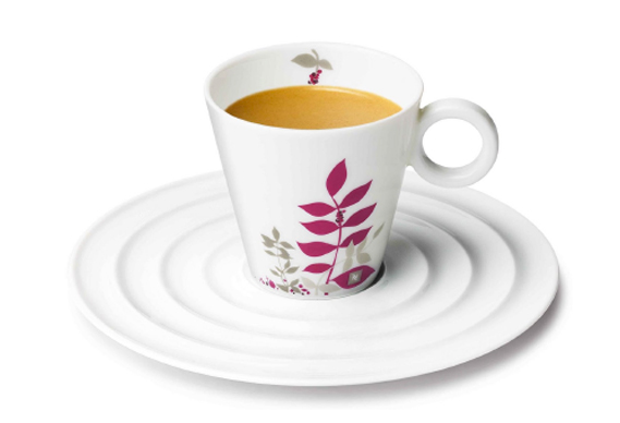 El set de dos tazas para espresso de Edición Limitada están empacadas en un elegante estuche negro con una cubierta color rosa-púrpura que refleja el color del sleeve de Naora. Ilustrado con el diseño orgánico de Bost, las imágenes resaltan los vivos colores de las perfectas cerezas maduras que hacen de Naora un café extraordinario. El set de dos tazas y platos tendrá un precio de $500.00