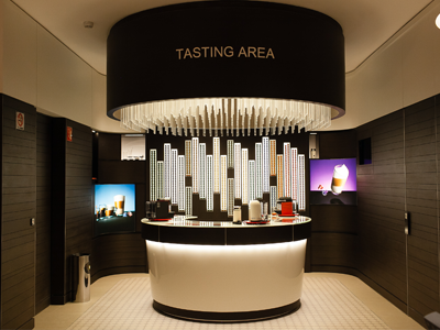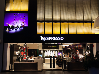 En la boutique se aprecian líneas limpias, iluminación perfecta, con la clásica y creativa decoración de sus boutiques alrededor del mundo, con paredes de hileras de Grand Crus Nespresso, combinando sus colores y dándonos una gran experiencia de compra. Nuestra red global de boutiques brindan a los consumidores una oportunidad única para experimentar Nespresso con todos sus sentidos. Las boutiques Nespresso abren una ventana al corazón de la marca y también funcionan como punto de venta reinventando la forma en que los consumidores interactúan con la marca.