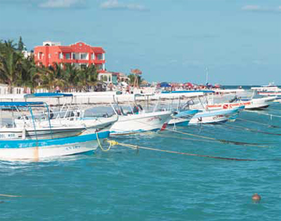 COzUMEL. Esta isla —la tercera más grande del país— se encuentra a 50 km de Cancún; en maya significa “tierra de las golondrinas” y es un destino casi obligado para los visitantes del Caribe mexicano, que deben abordar el transbordador desde Playa del Carmen. Una vez llegado ahí, es imperdible visitar Punta Sur, reserva ecológica cuyo objetivo es el rescate y conservación de la flora y fauna de la zona. Cerca de ahí se localiza el faro Celerain, cuya vista desde las alturas e espectacular. Cozumel cuenta con una amplia infraestructura hotelera y con múltiples restaurantes con una muy variada gama de alternativas que van desde ceviches de caracol al mojo de ajo o de pez león; asimismo se pueden disfrutar de las empanadas mayas, elaboradas con masa de maíz mezclada con chaya y rellenas de carne, queso o pescado; boquinetes fritos, junto con los pimitos (pequeños sopes fritos en manteca), frijoles machacados y refritos con manteca y el ixcochin (pescado entomatado), antojitos que es menester probar. La oferta culinaria puede continuar con un ceviche de langosta, ensalada de cangrejo, pez león en costra de pepita de calabaza con salsa de aguacate, y para endulzar la boca, nada como un helado de coco.