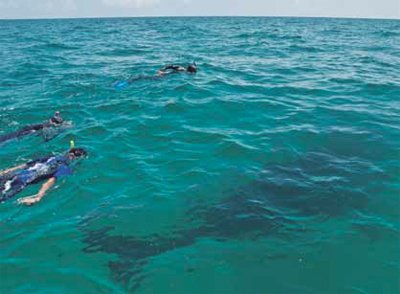 Esta isla también tiene fama porque de mayo a agosto arriban a sus playas decenas de tiburones ballena. En esas fechas la afluencia de visitantes se incrementa y los paseos en lancha para admirar a estas especies son abundantes.