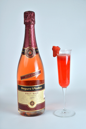 - Haz un colado fino con una coladera casera de hoyos muy pequeñitos, para que sólo pase el mix más exquisito. Vierte el colado en una copa para champaña, llenando ¾ de la copa Y lo mejor, agrega 1 top (el cuarto restante de la copa) de Segura Viudas Brut Rose, verás cómo sus finas burbujas rojas, coronarán la mezcla.
