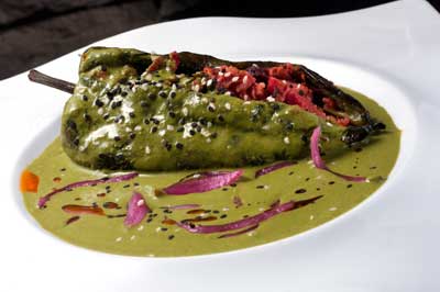 a) Chiles Rellenos de Marlín Ahumado con Salsa de Cilantro