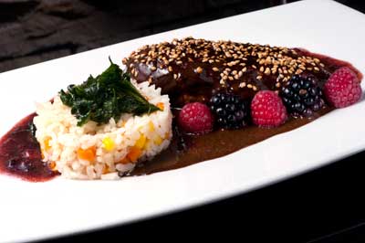 b)Magret de pato en mole