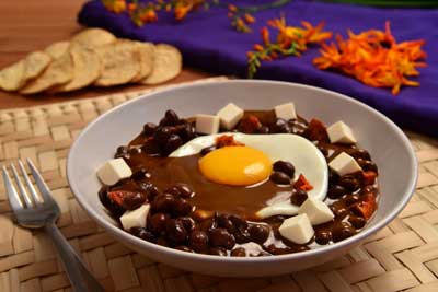 Calienta en diferentes ollas los frijoles y el Mole Almendrado Doña María® Listo para Servir. Cocina el chorizo en una sartén y reserva. Vierte el aceite en otra sartén y prepara los huevos estrellados uno a uno. En cuatro cazuelitas individuales o platos de barro coloca una capa de frijoles, un poco de chorizo, un huevo estrellado, cubos de queso panela y baña abundantemente con el Mole Almendrado Doña María® Listo para Servir. Acompaña con totopos o tostadas.