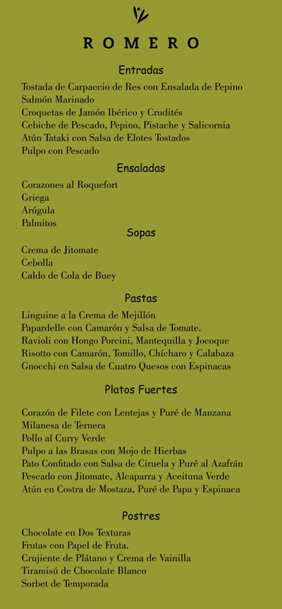 Romero abre sus puertas para toda persona que disfrute de comer bien, que reconozca la calidad y tenga gusto por experimentar sabores, olores texturas y técnicas culinarias que despierten sus sentidos. Sin duda un lugar que hay que conocer.