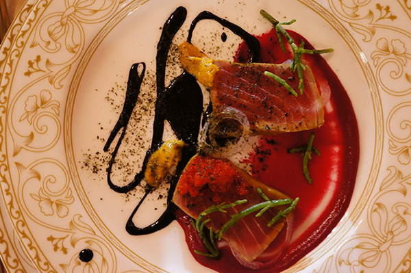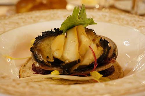 Las bondades de alimentos de Ensenada, Baja California, fueron las encargadas de conquistar el paladar de los huéspedes, al igual que sus maridajes. La cena se abrió con un Aguachile fresco y potente que se equilibró con una cerveza Tempus Dorada. A mi parecer, un gran inicio. Siguió el Atún, erizo y tinta de calamar, homenaje a los productos marinos de aquellos mares californianos, que además resultó ser toda una pintura al plato; mientras que la tostada de abulón con escabeche de betabel, hizo un maridaje de seguimiento con el Viña Kristen Sauvignon Blanc de Monte Xanic.